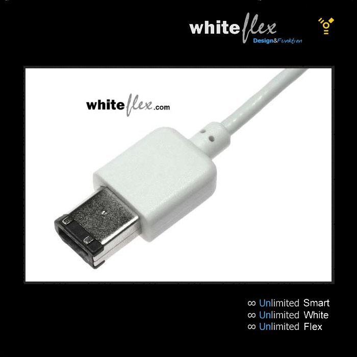 WHITEFLEX Firewire 400 Kabel 2x 6-polig weiss + flexibel 1m (Mindestbestellmenge 500 Stück)