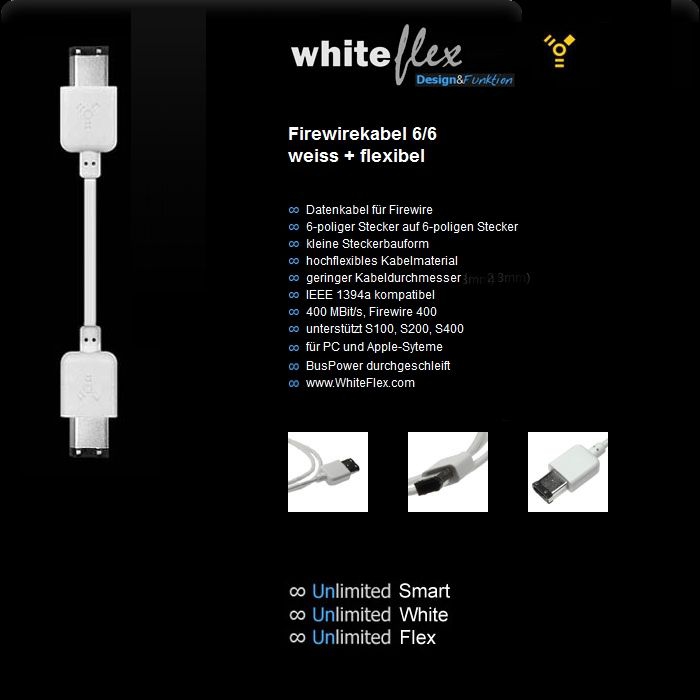 - WhiteFlex Firewire 400 Kabel 6-polig auf 6-polig