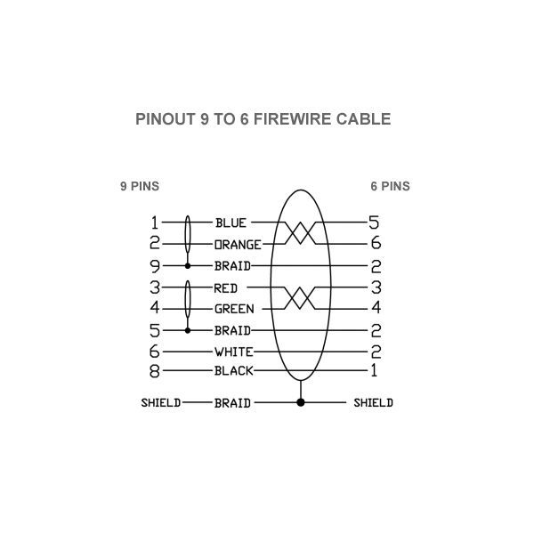 - 9-poliger Firewire-Stecker (biligual) auf 6-poligen Firewire-Stecker