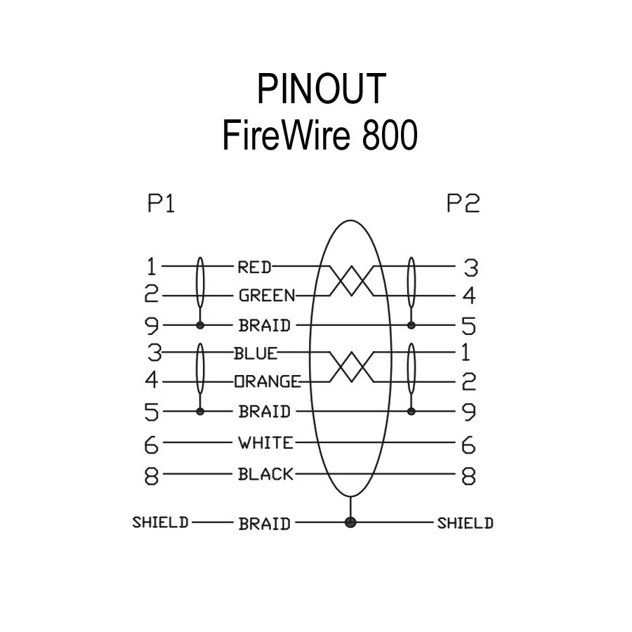 Das Firewire 800 Kabel ist mehrfach geschirmt und hat paarig verdrillte Leitungen (twisted pairs). Als Schirmung wird ein Geflechtschirm verwendet und zudem eine flexible Aluminiumfolie.