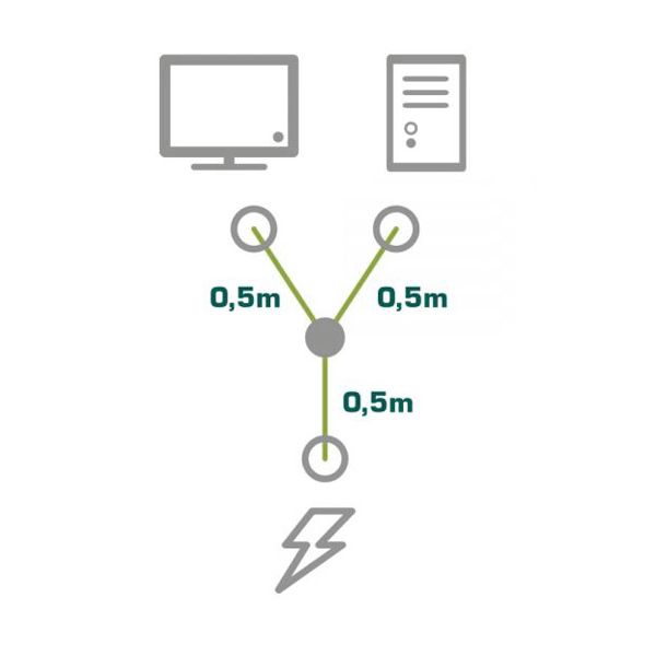 Mit dieser 1m langen Y-Verbindung können Sie z.B. 2 PCs an eine USV (UPS) anschließen und so einen USV-Steckplatz einsparen. USV-Ports sind ja immer knapp.