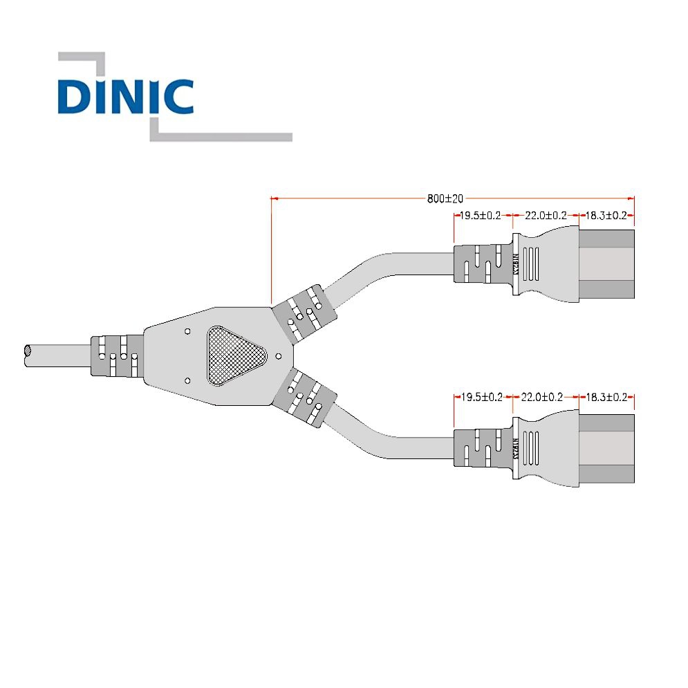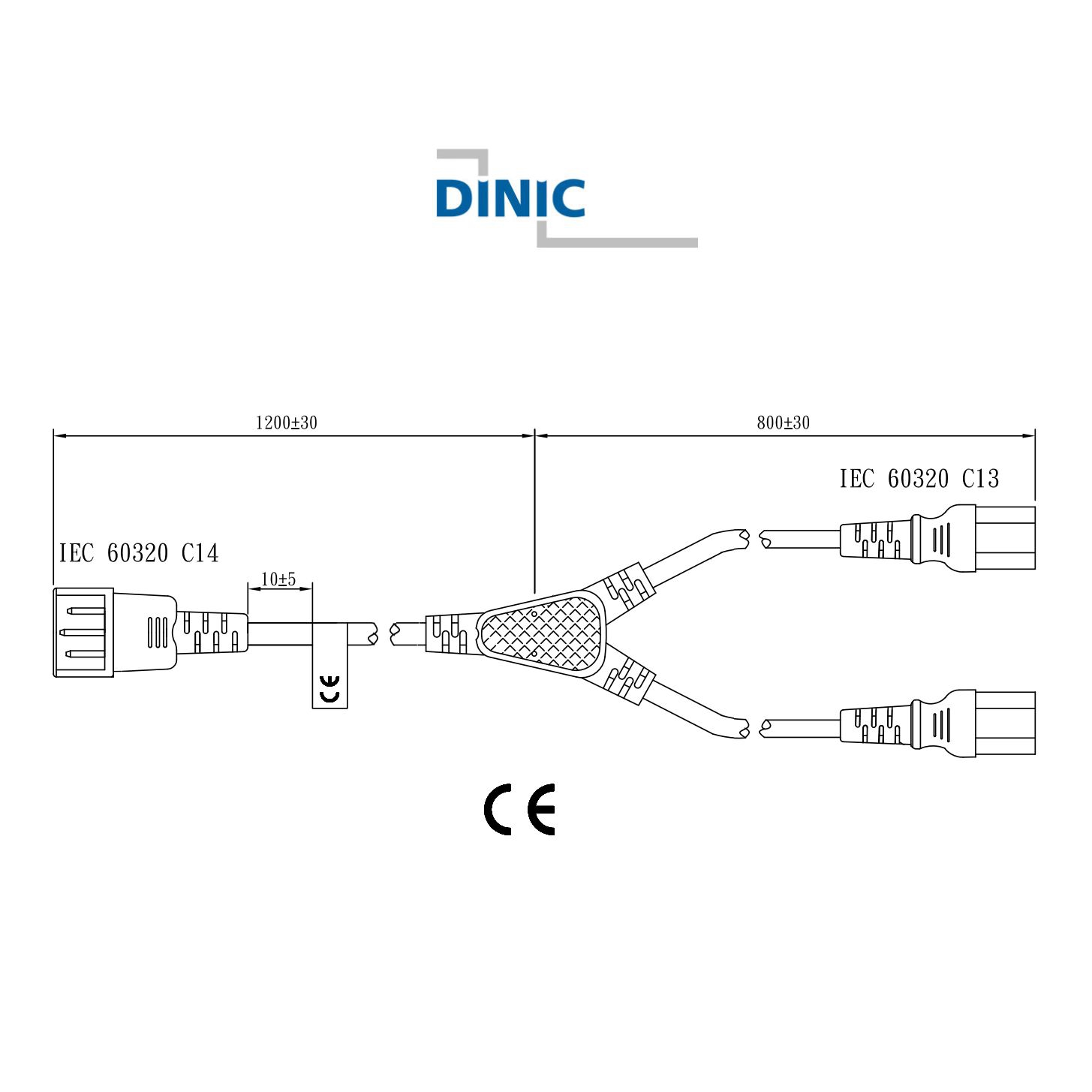 Y-Kaltgerätekabel, 1x Kaltgerätestecker C14 an 2x Kaltgerätebuchse C13 (Y-Verzweigung), Länge 2m (C14 bis Y 120cm, Y bis 2x C13 je 80cm)